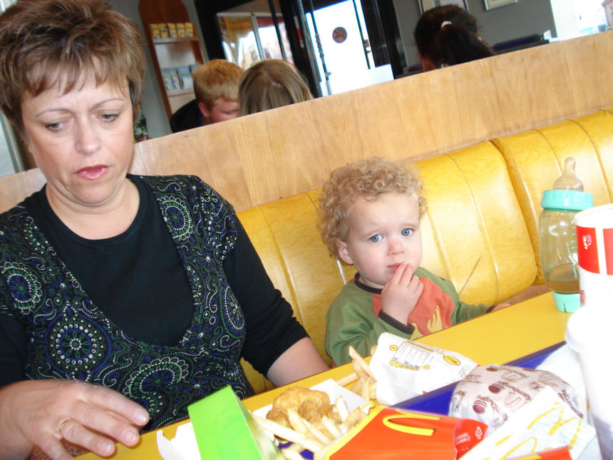uit eten bij mcdonald zonder kinderstoel.. |