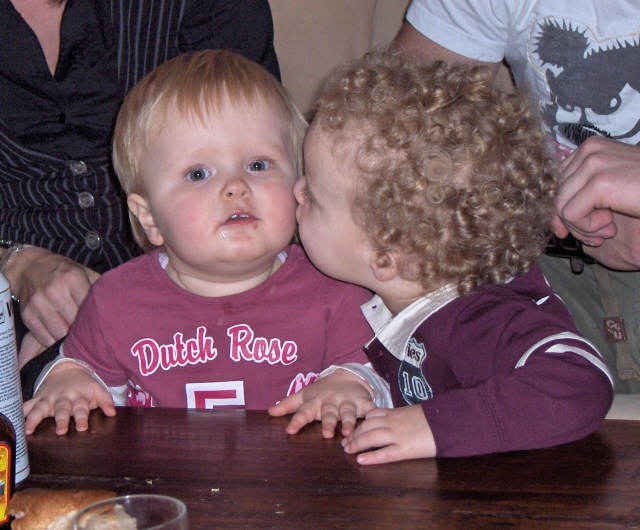 Willemijn op bezoek, allen maar oog voor elkaar... |