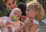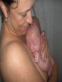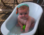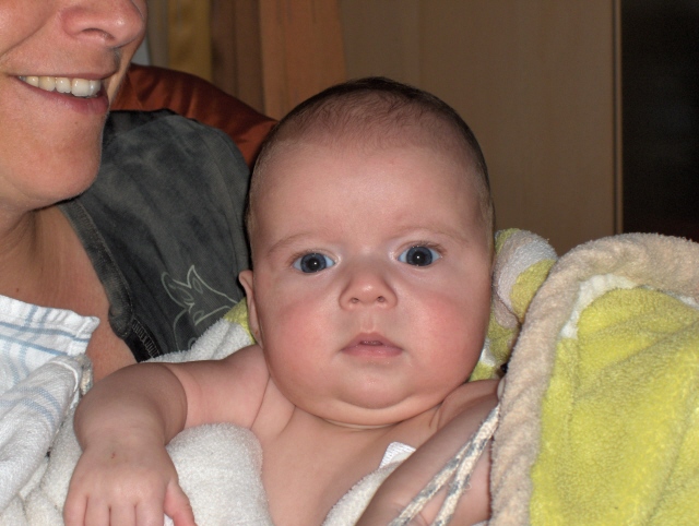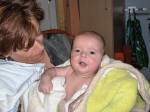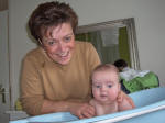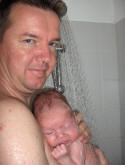 Met mama onder de douche, lekker hoor. |