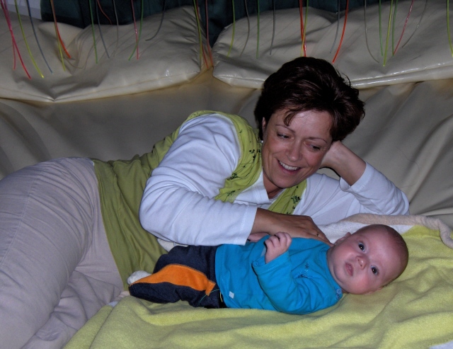 Thijn met Carla, mama's schoonheidsspecialiste |